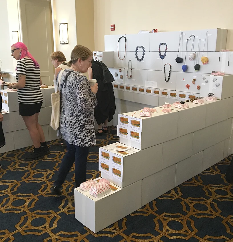Adorned Spaces was open from Wednesday afternoon until Friday night, when a closing function was held. The location was a ballroom at the conference venue, which might sound strange but was perfectly situated to be easily accessed during the break times throughout the conference and was large enough to house the 20! exhibitors. It was a really diverse showing of student, emerging and established makers and I was proud to be representing work from the makers of my Australian studio, Katie Stormonth, Clare Poppi, Nellie Peoples and myself. The work in the SUNY New Paltz student display next to ours was so impressive it had me captivated during all the moments I wasn't talking to the encouraging exhibition viewers. Big thanks to Lindsay Mis and Kelly Jean Conroy for jurying AND coordinating the event. I've put some photos from Adorned Spaces at the end of this post.